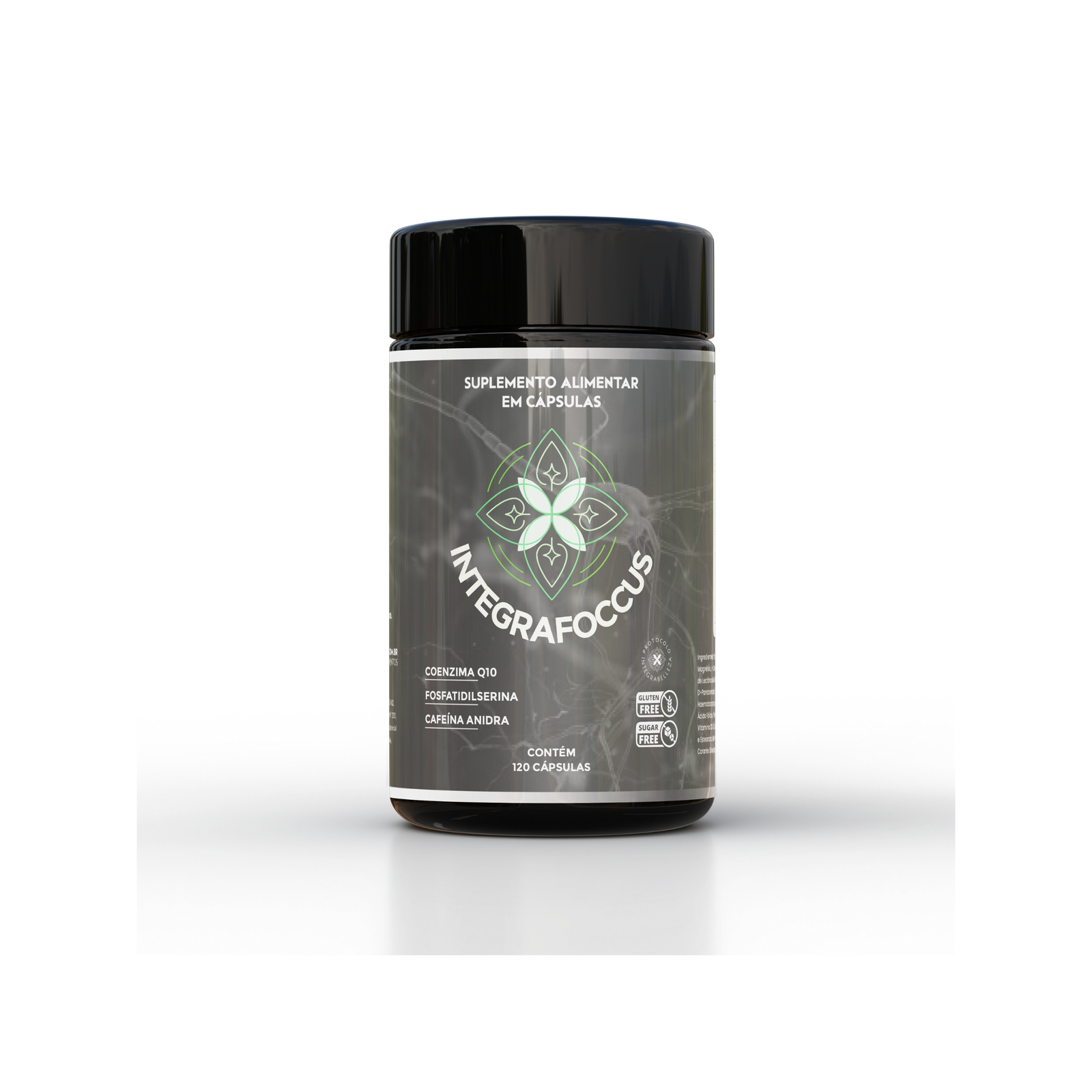 Suplemento alimentar em cápsulas, desenvolvido com uma combinação estratégica de coenzima Q10, fosfatidilserina, cafeína anidra e outros nutrientes que atuam em sinergia para otimizar a função cerebral, oferecendo suporte à concentração, foco mental e agilidade cognitiva.