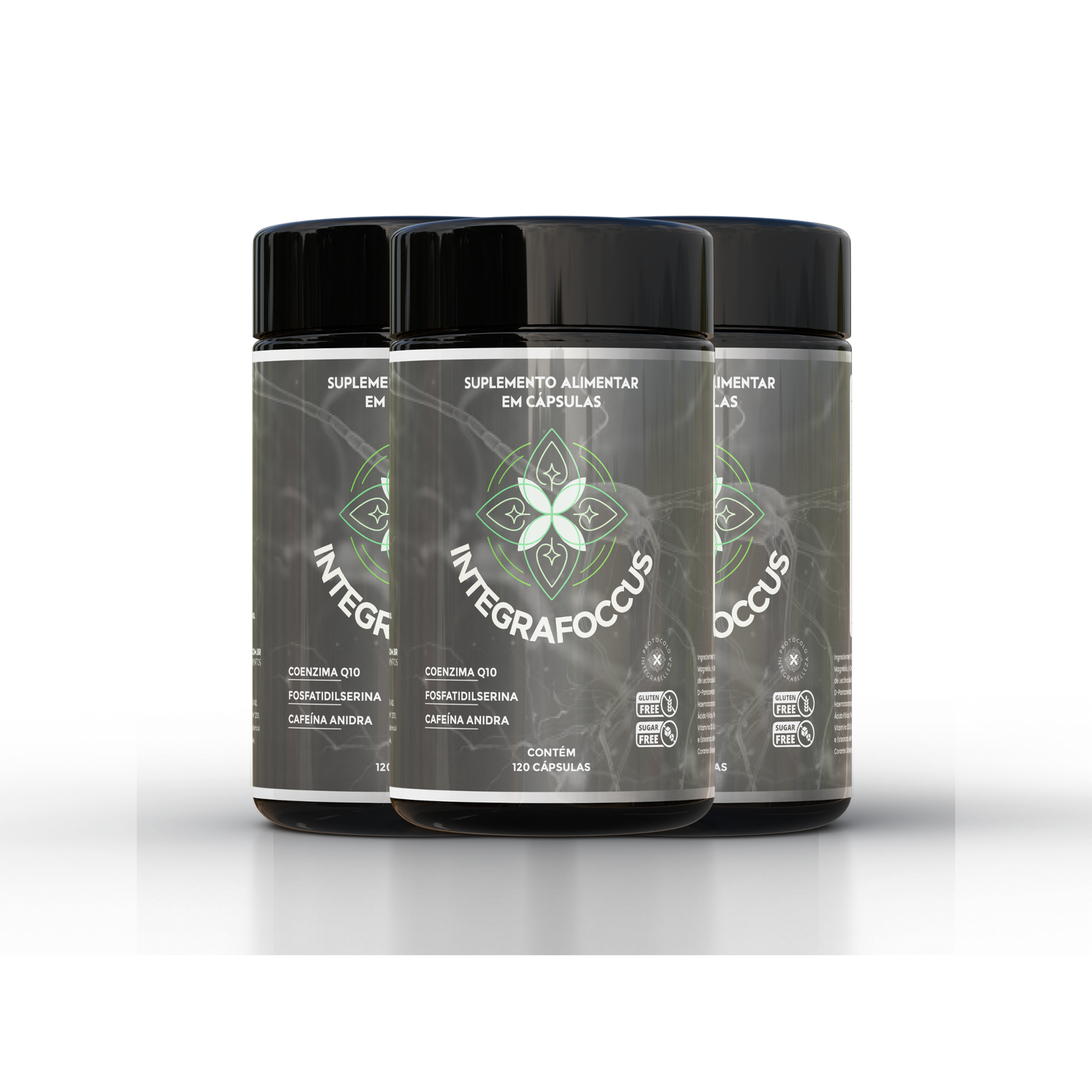 Suplemento alimentar em cápsulas, desenvolvido com uma combinação estratégica de coenzima Q10, fosfatidilserina, cafeína anidra e outros nutrientes que atuam em sinergia para otimizar a função cerebral, oferecendo suporte à concentração, foco mental e agilidade cognitiva.